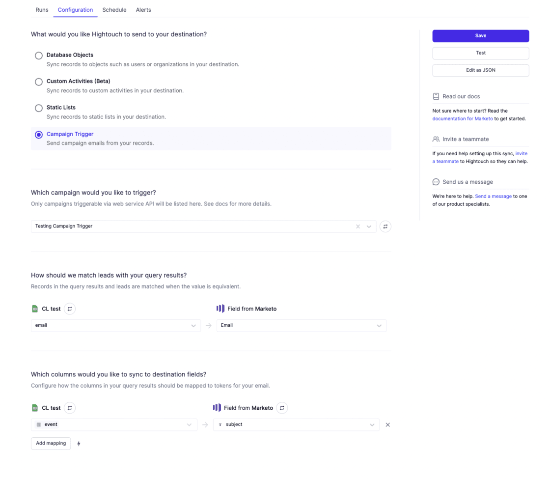 Marketo Campaigns: Trigger Marketo Campaigns directly in Hightouch and send emails to your leads.