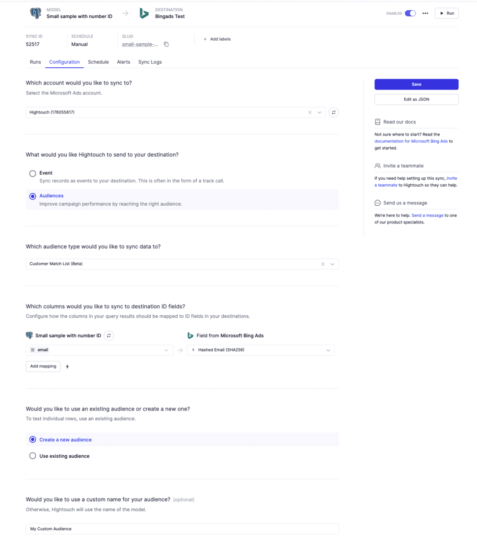 Bing Ads Audiences: We’ve made a minor improvement to our Bing Ads destination so you can automatically create an audience when you run an initial sync.