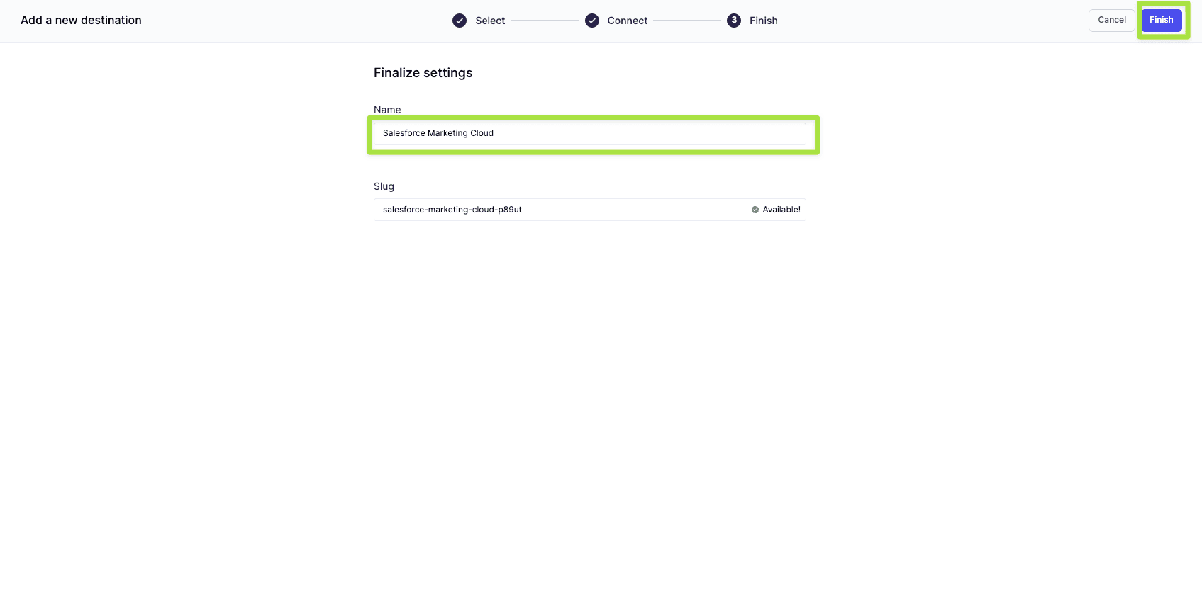 Name the destination and click Finish.